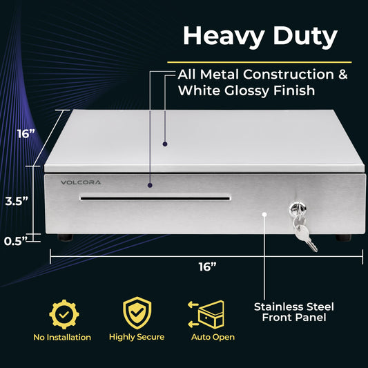 16'' Cash Register Drawer with 5 Bill 6 Coin Cash Tray, White with Stainless Steel Front