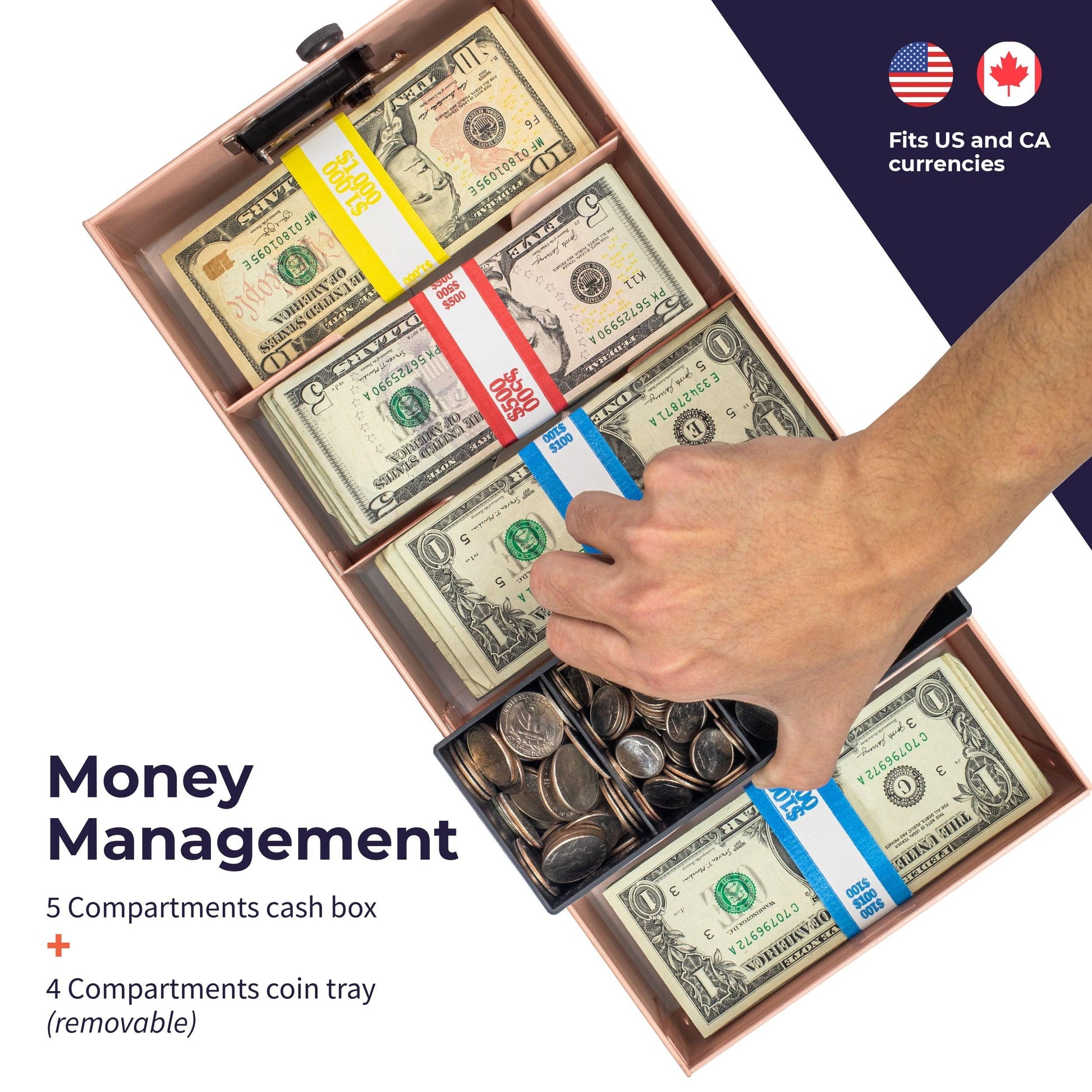 5 Compartment Cash Lock Box with Coin Tray