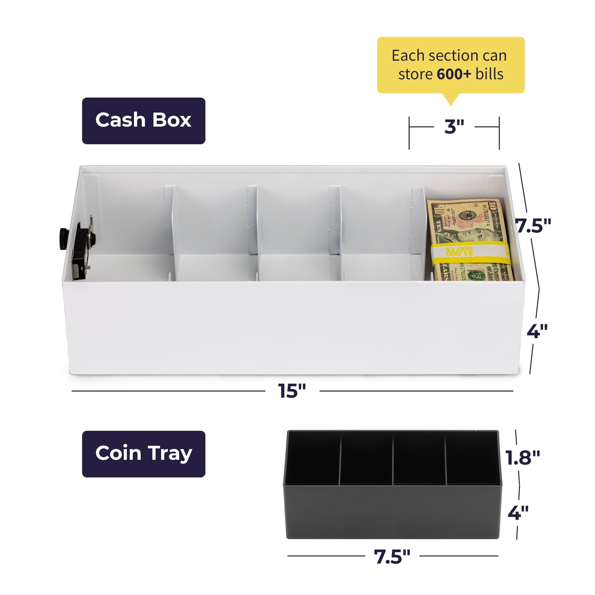 Our cash box is built with reinforced heavy duty steel material to prevent theft and cash box damage while still being lightweight to carry and transport on the go or swap out during a work shift change.