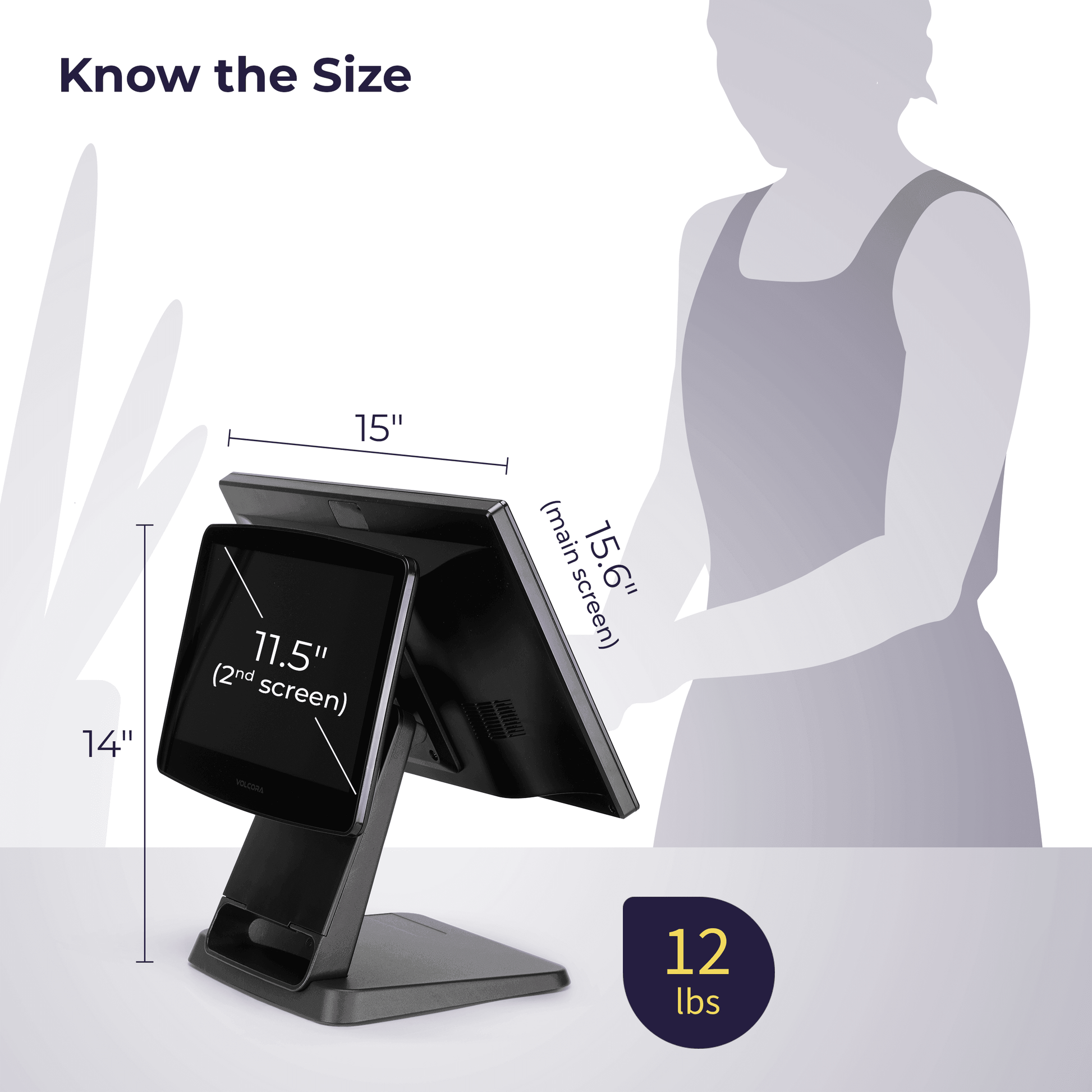 - SLEEK & COMPACT DESIGN - Volcora POS Terminal Cash Register is designed to take up as little space as possible so you can focus on better utilization of the counter space. Our sleek yet heavy-duty metal base ensures the terminal is well-stabled while taking orders with style. Suitable for any business such as retail stores, quick service restaurants, dine-in restaurants, cafes, bars, and more.